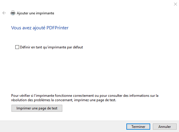 8) Surtout NE PAS définir cette imprimante PDF par défaut (ni