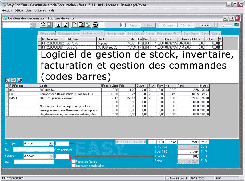 et de gestion de stock :